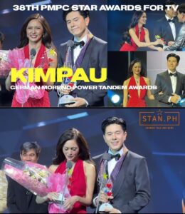 Sa isang gabi ng bituin, emosyon, at tagumpay, muling pinatunayan ng tambalang Kim Chiu at Paulo Avelino—kilala bilang “KimPau”—na sila ang isa sa pinakamatatag at pinakapinag-uusapang love team sa telebisyon. Sa ginanap na 38th PMPC Star Awards for Television, ginawaran sila ng prestihiyosong German Moreno Power Tandem Award, isang pagkilala sa kanilang hindi matatawarang chemistry at kontribusyon sa industriya ng TV.