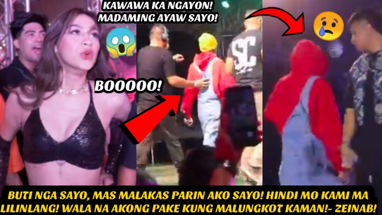Ayon sa mga naroroon, si Zeinab, sa isang matigas at seryosong postura, ay umaksyon o nagbigay ng pahiwatig na nagresulta sa agarang pagpapaalis kay Skusta Clee sa entablado. Hindi ito isang maayos na pagtapos ng kanta o technical issue; ito ay isang forced and humiliating exit. Mapapansin sa mga video ang pagtataka, pagkalito, at sa huli ay ang kahihiyan na bumalot kay Skusta habang siya ay napilitang bumaba, kasabay ng magkahalong hiyawan at pag-iingay ng publiko—mayroong nagalit, ngunit marami rin ang nagbigay ng suporta sa ginawa ni Zeinab.